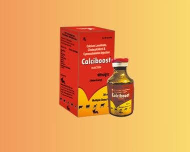 Calciboost – Calcium Levulinate 76.4m Injection is a powerful calcium, vitamin D, and vitamin B12 supplement formulated to support animals during late pregnancy, post-parturition, and high-milk-yielding phases. It helps correct calcium imbalance, prevents milk fever, strengthens uterine muscles, and boosts overall skeletal health. The combination of Calcium Levulinate, Cholecalciferol, and Cyanocobalamin enhances calcium absorption, neuromuscular function, and red blood cell formation. Ideal for cattle, buffaloes, sheep, goats, and debilitated animals, it promotes vitality, growth, and improved body condition.