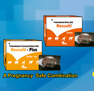 Neosafe and Neosafe Plus Bolus are highly effective deworming solutions designed to protect neonatal calves and pregnant animals safely. Formulated with Fenbendazole, and in the Plus variant combined with Ivermectin, they offer broad-spectrum efficacy against gastrointestinal nematodes, lung worms, tape worms, lice, grubs, hypodermal larvae, and psoroptic mange. Fenbendazole provides approximately 99% effectiveness against ova, larvae, and adult worms, ensuring complete parasite control. With a pregnancy-safe formulation and single-dose convenience, Neosafe products help improve animal health, growth, and overall productivity.